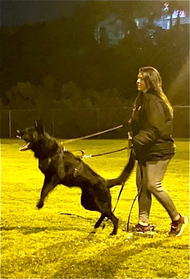 Fantom's bite is nothing short of formidable- it is a testament to his power and precision, a skill honed through rigorous training and an innate sense of duty. No matter the task, Fantom approaches each assignment with enthusiasm and an unparalleled focus that sets him apart from the rest. He is currently training in IGP, scent detection, police work, personal protection and obedience.